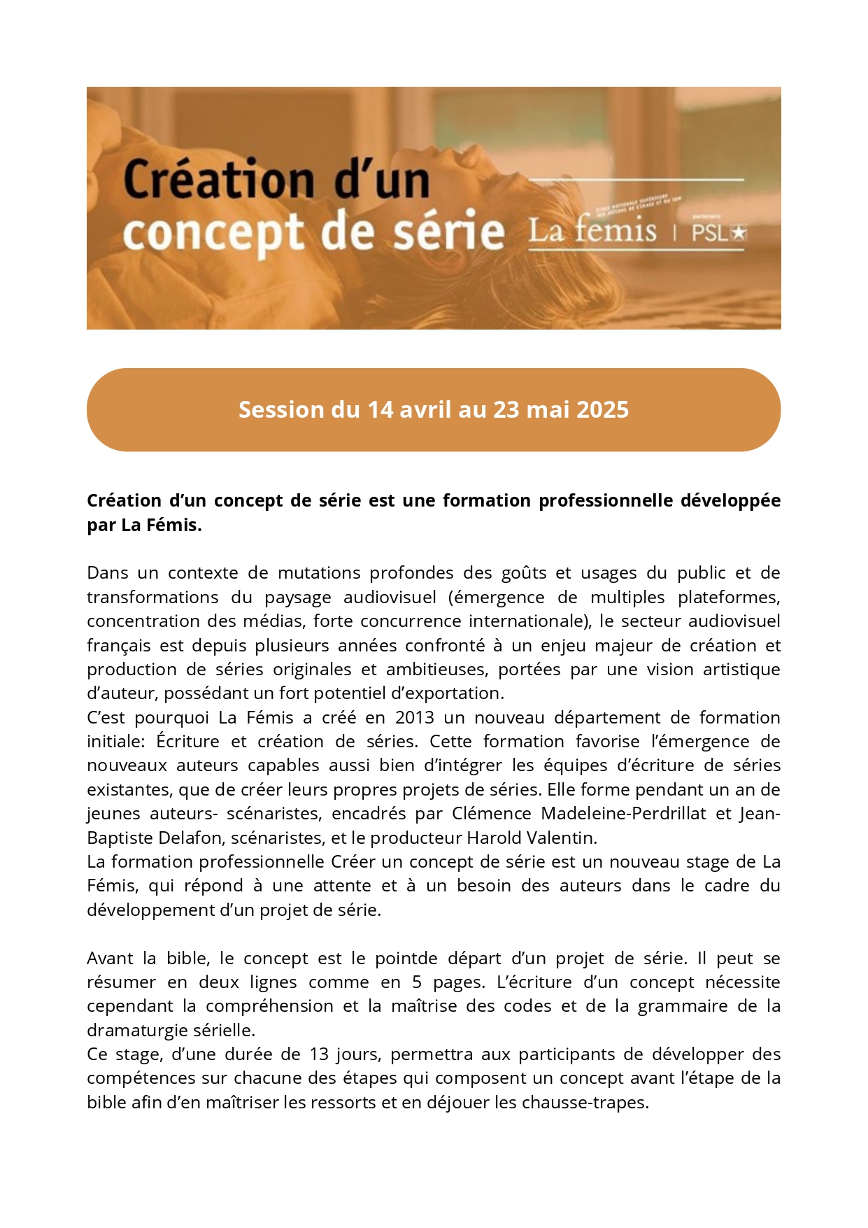 Création d’un concept de série est une formation professionnelle développée par La Fémis.
