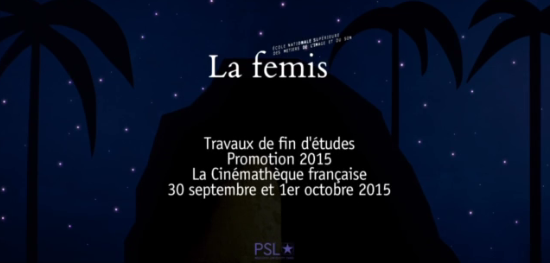 Après la présentation à la Cinémathèque française le 30 septembre et le 1er octobre, La Fémis vous invite à venir découvrir les travaux de fin d’études de la promotion 2015 à l’École.