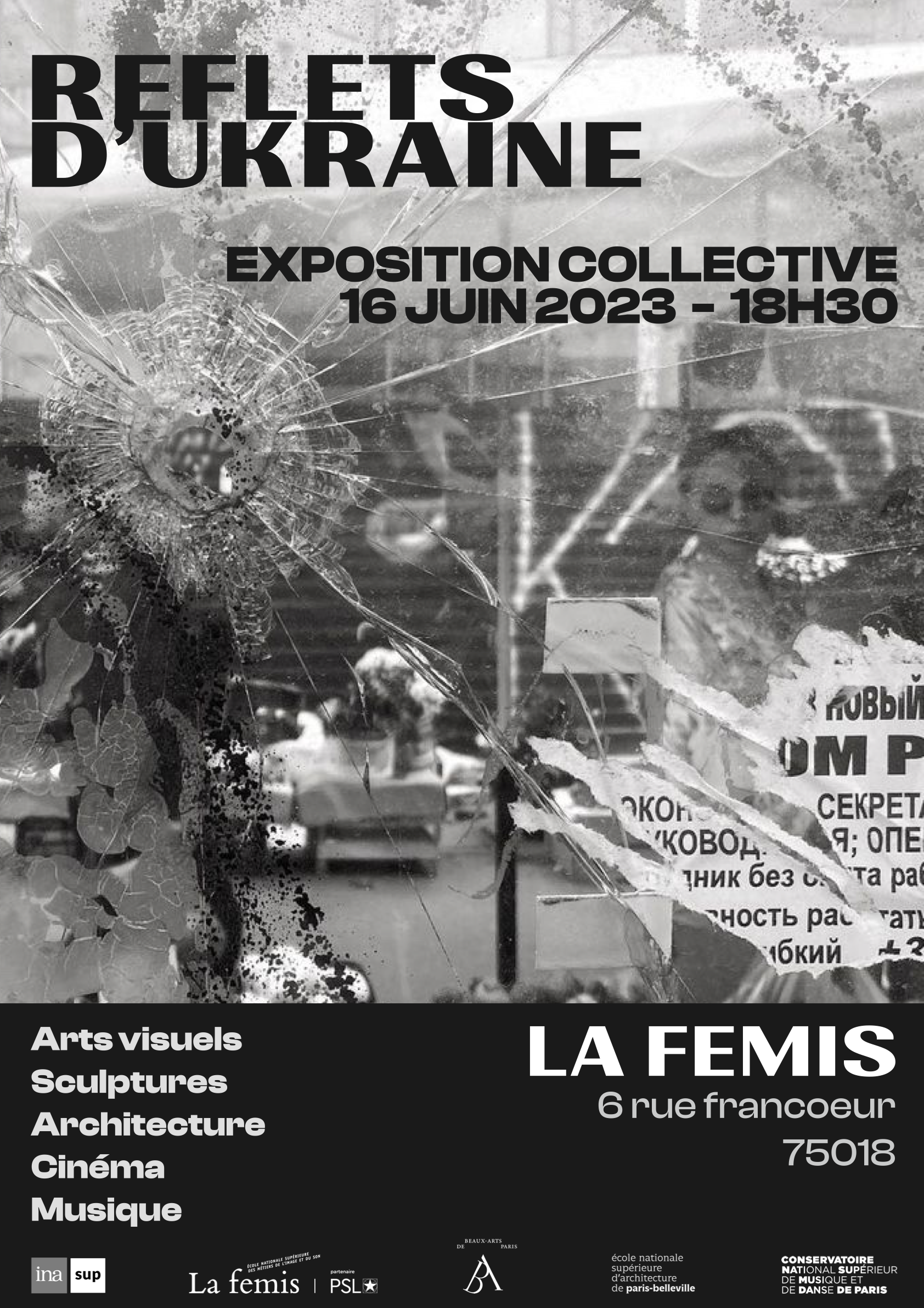 Les écoles INA sup, La Fémis, Les Beaux-Arts de Paris, l’École Nationale Supérieure d’Architecture de Paris-Belleville et le Conservatoire National Supérieur de Musique et de Danse de Paris ont le plaisir de vous inviter à l’exposition collective Reflets d’Ukraine autour du travail de 20 étudiants déplacés d’Ukraine, une soirée placée sous le signe de l’espoir, de la solidarité et du soutien aux jeunes talents !